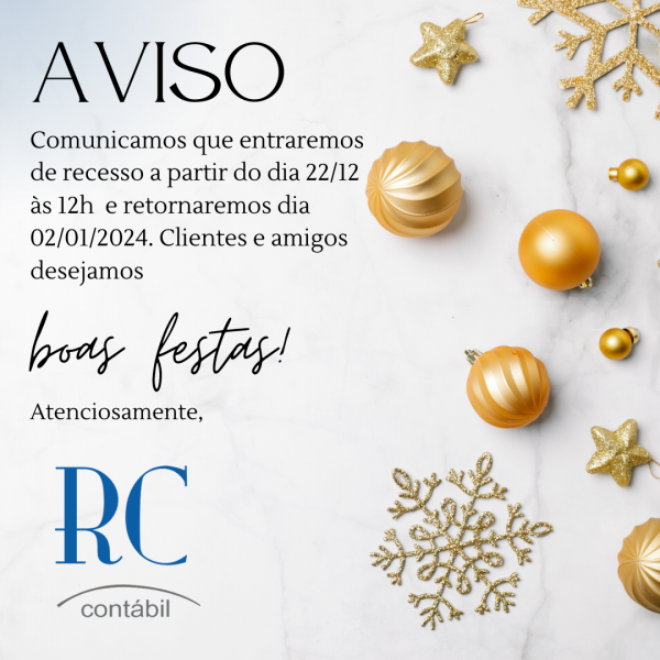 Comunicamos que entraremos de recesso a partir do dia 22/12 às 12h e retornaremos dia 02/01/2024. Clientes e amigos desejamos Boas Festas!